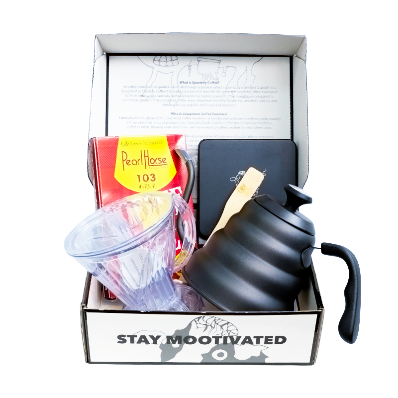 with an option to 1) add a Surprise 250Gram bag of coffee2) upgrade Silver Kettle to Black Matte Kettle with Thermometer3) upgrade to Black Kettle and add 250Gram Roasted CoffeeLearn how to use your Clever Cup Dripper: