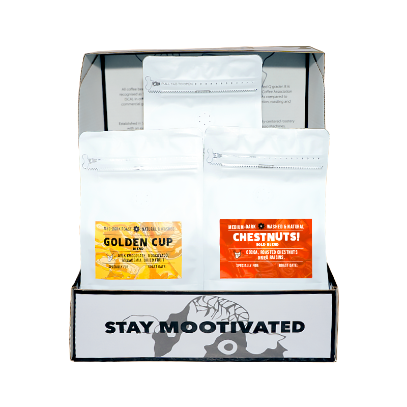 This gift set includes three coffee blends: