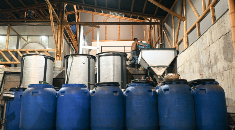 For the Washed Kiwi Co-Ferment, the process begins with the careful development of a dedicated fermentation culture. A mother culture is first cultivated, composed of select microorganisms such as lactobacillus and saccharomyces cerevisiae. From this foundation, 80 litres are separated and nourished with dehydrated kiwi alongside a traditional sweetener such as panela or molasses.