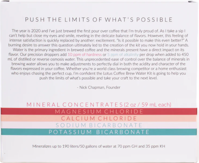 Want your coffee to actually taste like the coffee you paid for? It all starts with the water. Lotus Water lets you tweak your brew water so your coffee’s best flavours shine - just by adjusting the mineral content